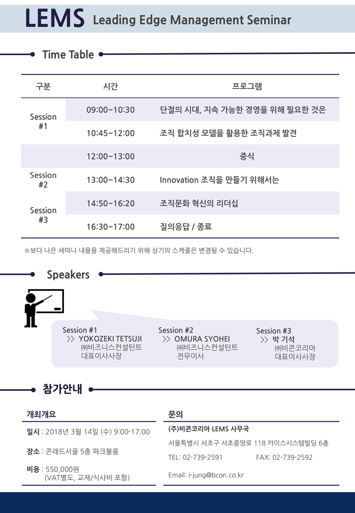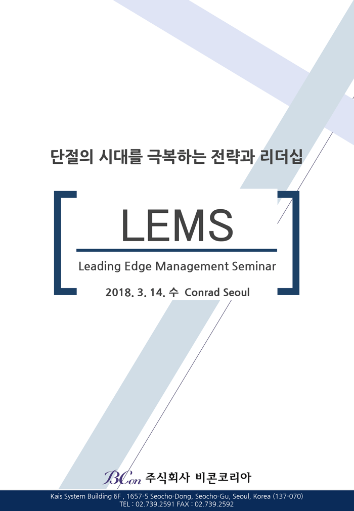 [LEMS] 지속 가능한 강한 조직을 위한 리더십과 전략 세미나 (2018.03.14 수, 콘래드서울 5F 파크볼룸)
