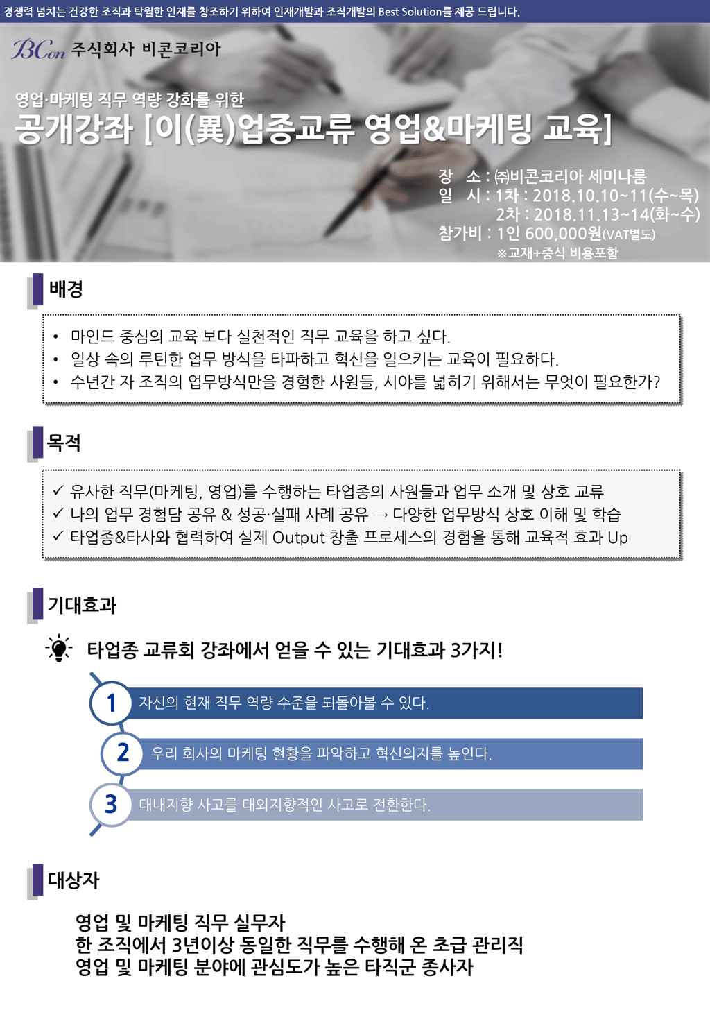[이업종교류 영업&마케팅 교육 개요]