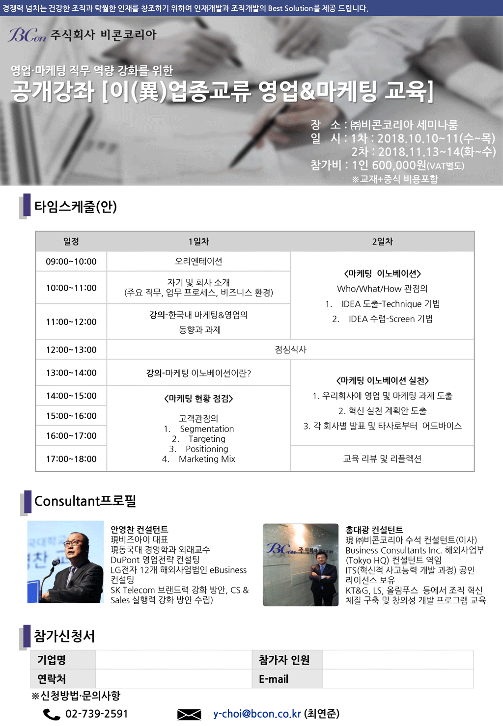 ◆ 참가비 : 600,000원 (부가세 별도)