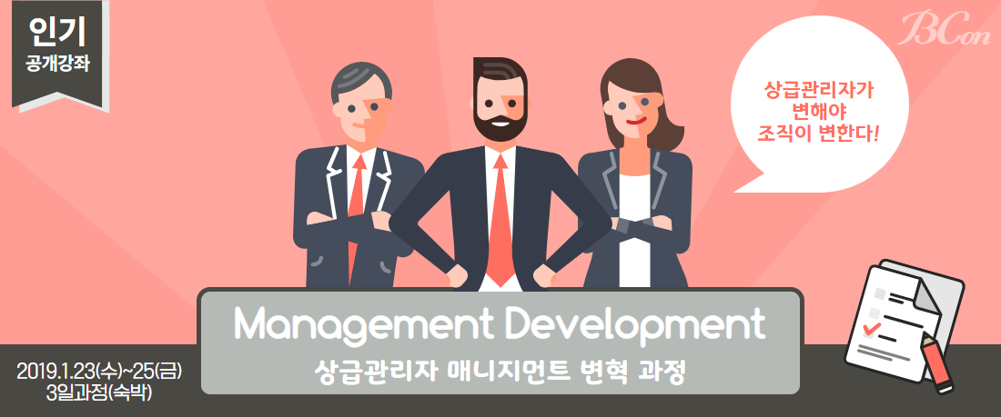 [1월 공개강좌] 상급관리자 매니지먼트 변혁 과정 (2019.01.23-25, 수-금)