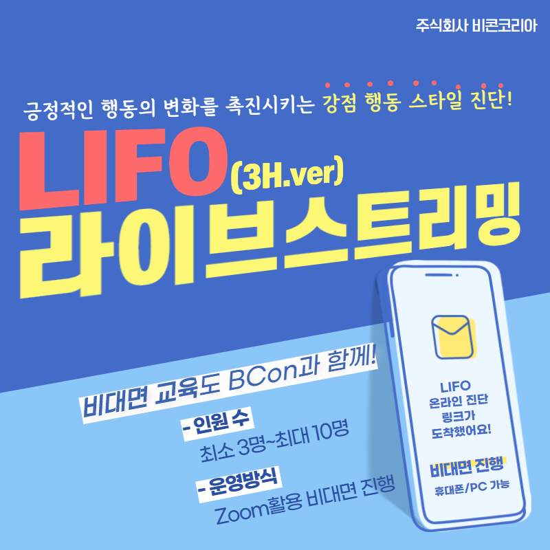 비콘코리아의 대표적 프로그램!강점 행동 스타일 진안인 LIFO(라이포)를Live STREAMING으로 만나보실 수 있는 기획을 마련했습니다 :)