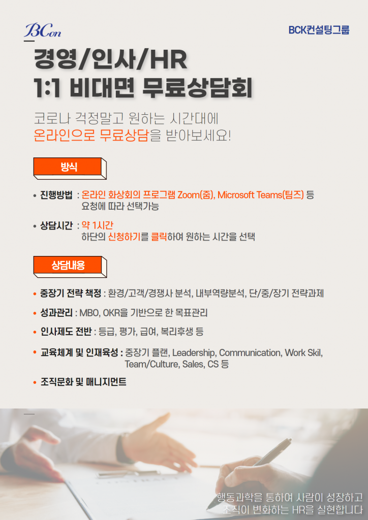 [비대면 무료상담회] 비씨케이컨설팅그룹 경영/인사/HR 1:1 무료상담회 개최!