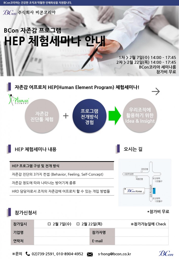 BCon의 자존감 프로그램인 HEP(Human Element Program)에 대하여