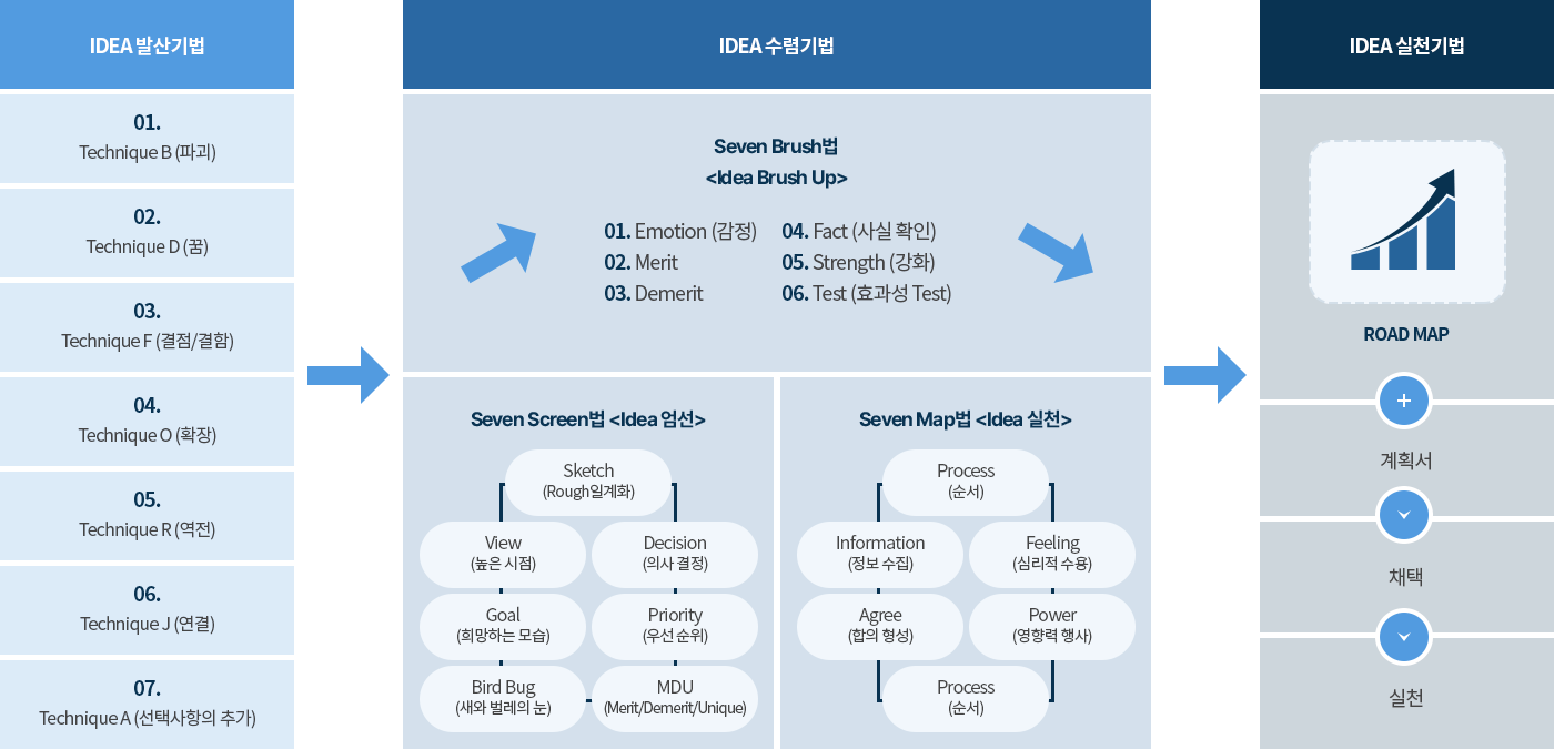 혁신적 사고의 발휘를 위해 다양한 기법을 습득합니다.